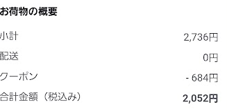 普段は約4,480円で販売されている商品ですが、TikTok Shopのクーポン&初回割引を利用して、2052円で購入完了できました。